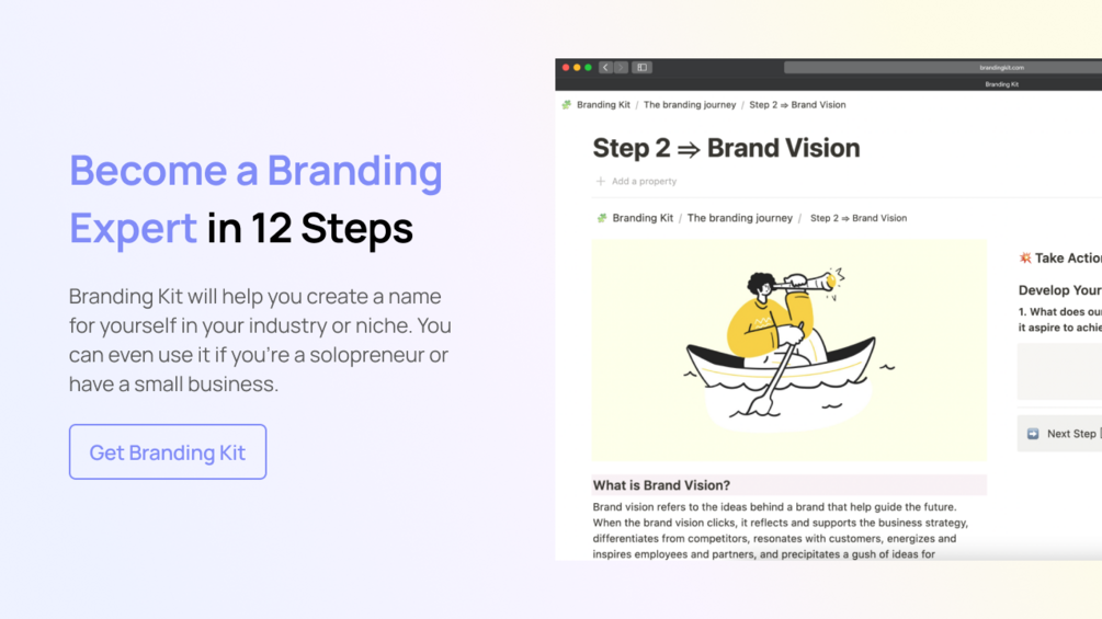 Branding Kit will help you create a name for yourself in your industry or niche. You can even use it if you're a solopreneur or have a small business.